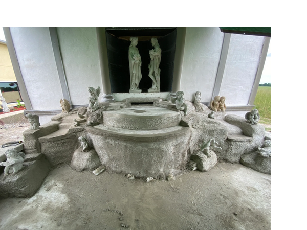 So we had to build the shed first.,Then the fountain area would be poured. But first we needed to build the alcove for the Romeo and Juliet statues. Otherwise how would we get them up there. They weigh around 600 lbs each!
